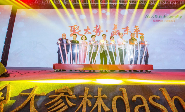 CQ9电子药业集团董事长刘景萍女士与大参林医药集团董事长柯云峰先生、中国医药商业协会执行会长付明仲女士等嘉宾共同开启了“聚大势•赢未来"大参林工商合作峰会的大幕。